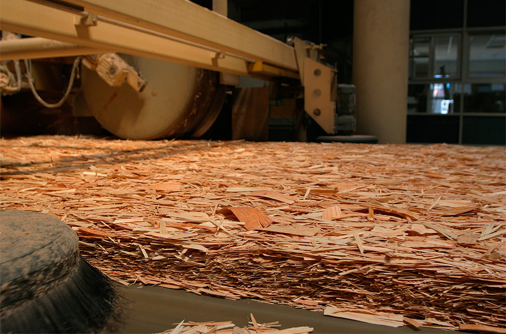2. Préparation de la matière première et fabrication de copeaux. Après le tri, un écorçage mécanisé des grumes est effectué. De plus, les grumes décortiquées sont sciées en petites billettes et envoyées à une raboteuse, où elles sont divisées en copeaux dans le sens des fibres du bois. À la fin de l'étape, les copeaux sont séchés par la méthode du convoyeur et triés.