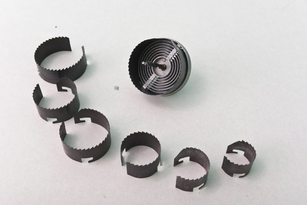 Un ensemble de couronnes pouvant être utilisées pour percer des trous dans les cloisons sèches.
