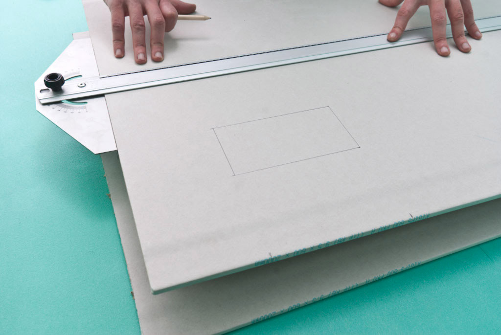 Coupez un trou rectangulaire dans la cloison sèche.