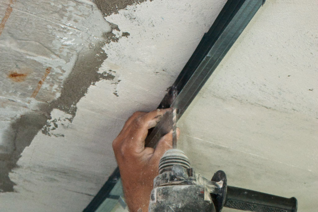 Si vous souhaitez fixer un profilé métallique à un plafond / mur spécifique, vous devez d'abord percer plusieurs trous de test dans la surface d'appui à l'aide d'une perceuse.