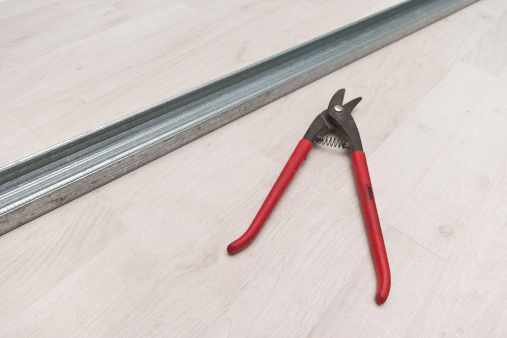 Pour commencer, sélectionnez les profilés de soutien et de guidage en métal de la bonne taille pour vos besoins. À l’aide de ciseaux tranchants pour le métal, coupez le profilé à la longueur requise.