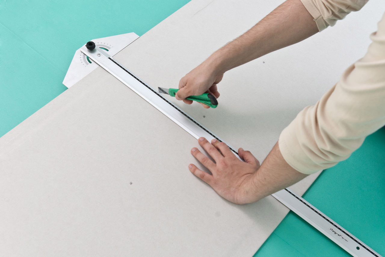 Conseil: pour former des plis présentant un petit rayon de courbure, vous devez effectuer des découpes à l’arrière de la feuille de cloison sèche tous les 3 à 5 cm. Nous vous recommandons d’envisager la séquence de vos actions au tout début de votre travail, cela vous aidera à éviter les erreurs éventuelles.
