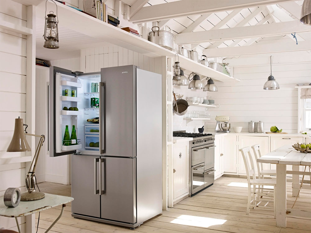 Le réfrigérateur classique Side-by-Side a un seul boîtier en métal, dont les dimensions atteignent souvent 220 cm de hauteur, 125 cm de largeur et 95 cm de profondeur. Des difficultés de transport de tels dispositifs ont conduit à l’apparition de structures préfabriquées provenant de deux unités distinctes, de conception commune et reliées à une structure unique déjà en place. Cela a donné des avantages supplémentaires, de sorte que ces modèles sont très demandés.