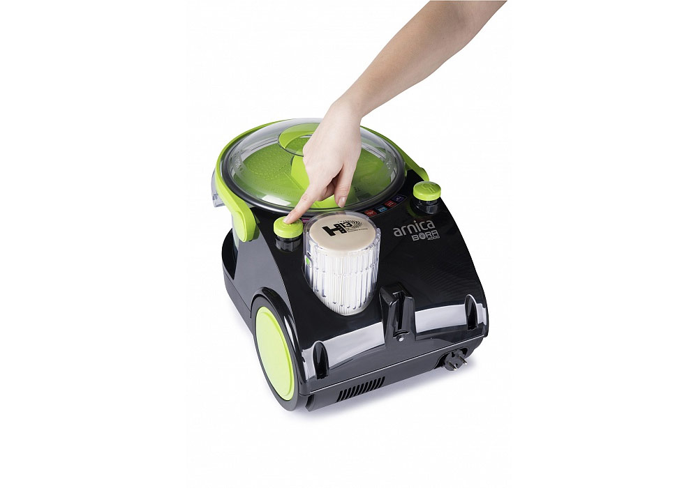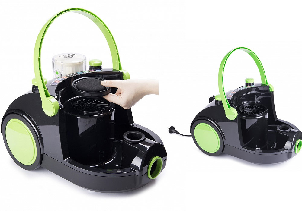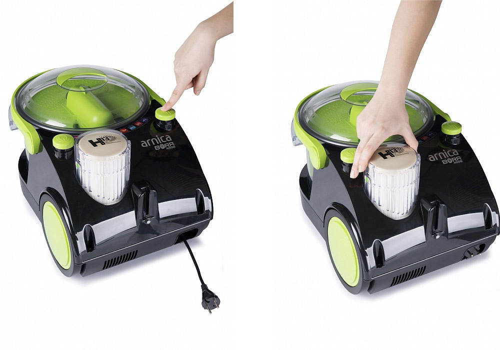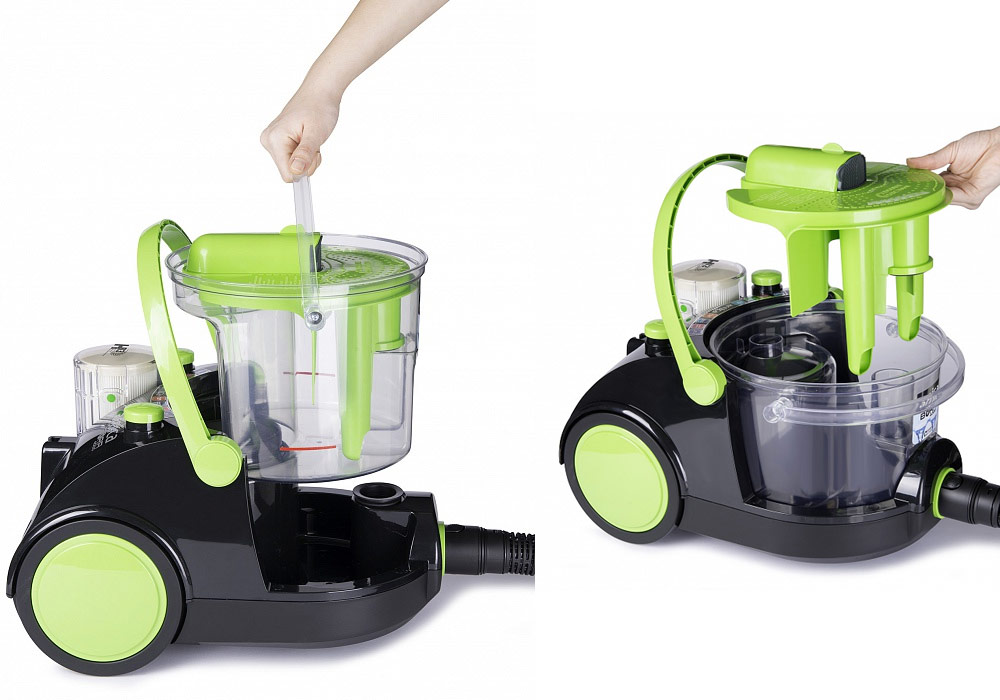 Un modèle équipé d'un aquafilter agit différemment. La poussière y pénètre dans la cuve où l’eau est versée. Les particules humides de poussière dans l'air deviennent lourdes et se noient. L'air sort propre et frais. Et s'il y a un filtre à poussière HEPA, il ne reste pas plus d'un centième de pour cent. Ceci est particulièrement important pour les enfants, les asthmatiques et les personnes allergiques.