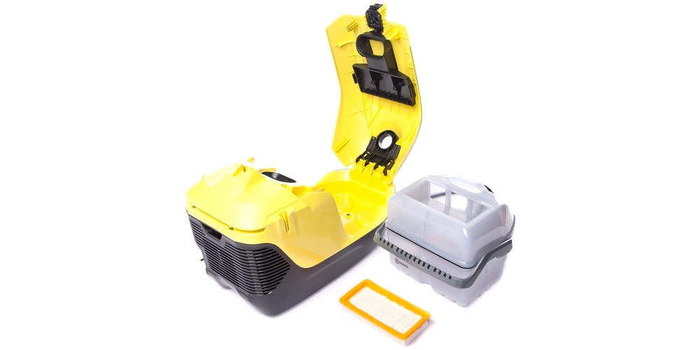 - Un conteneur en vrac pour l'eau sale - jusqu'à six litres. Et en plus un dustbag de trois litres.