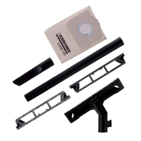 Aspirateur pour nettoyage à sec. Équipé d'un moteur de 2000 watts avec contrôle de vitesse, système de nettoyage en neuf étapes. Un sac d'une capacité de 4,5 litres est utilisé pour la collecte des ordures. Le kit comprend des buses pour le nettoyage de divers types de surfaces. La longueur du cordon d'alimentation est de 5,5 mètres.