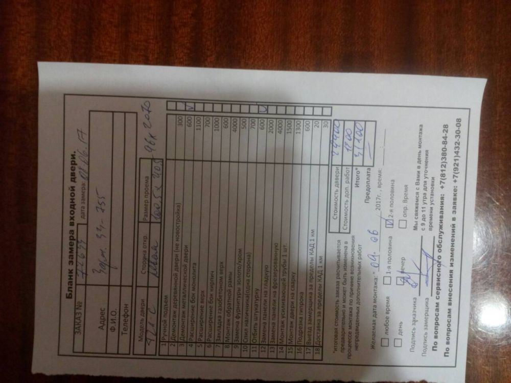 Deux mois après avoir installé la porte en granit, je suis rentré à la maison et j'ai réalisé que je ne pouvais pas entrer dans l'appartement. Pendant tout ce temps, la porte a été actionnée de manière très économe - personne ne vivait à la maison, ne dormait pas, ne visitait pas l'appartement. Je viens à la porte fermée, commence à penser quoi faire. J'ai décidé d'appeler le magasin où ils ont acheté la porte. J'ai trouvé le téléphone sur les cartes Yandex. J'ai appelé, expliqué la situation au garçon George. Gosh me dit - pas de problème, écris le téléphone, le maître viendra à toi.Je demande - qui va payer? Le contrat porte pour une garantie de 10 mois supplémentaires. A quoi ils me répondent - le maître va venir, regarde, ouvre la porte. Les services doivent être payés, mais obtenez un formulaire de lui - quelle est la cause du problème. Et sur ce bout de papier, ils me rendront l'argent.